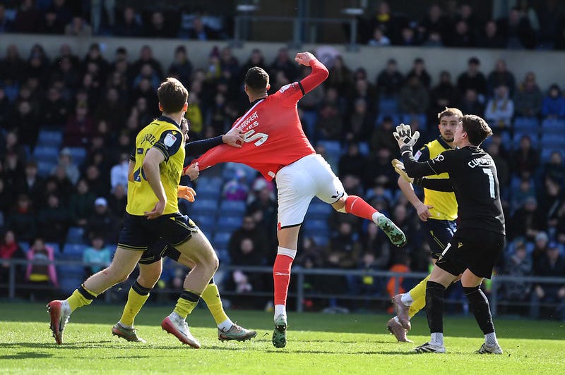 Charlton were unable to register a shot on target until referee Matt Donohue gave another penalty in second-half stoppage time. This one had far more substance with U’s defender Ciaron Brown pulling Lloyd Jones back - captured perfectly by photographer Kyle Andrews below.