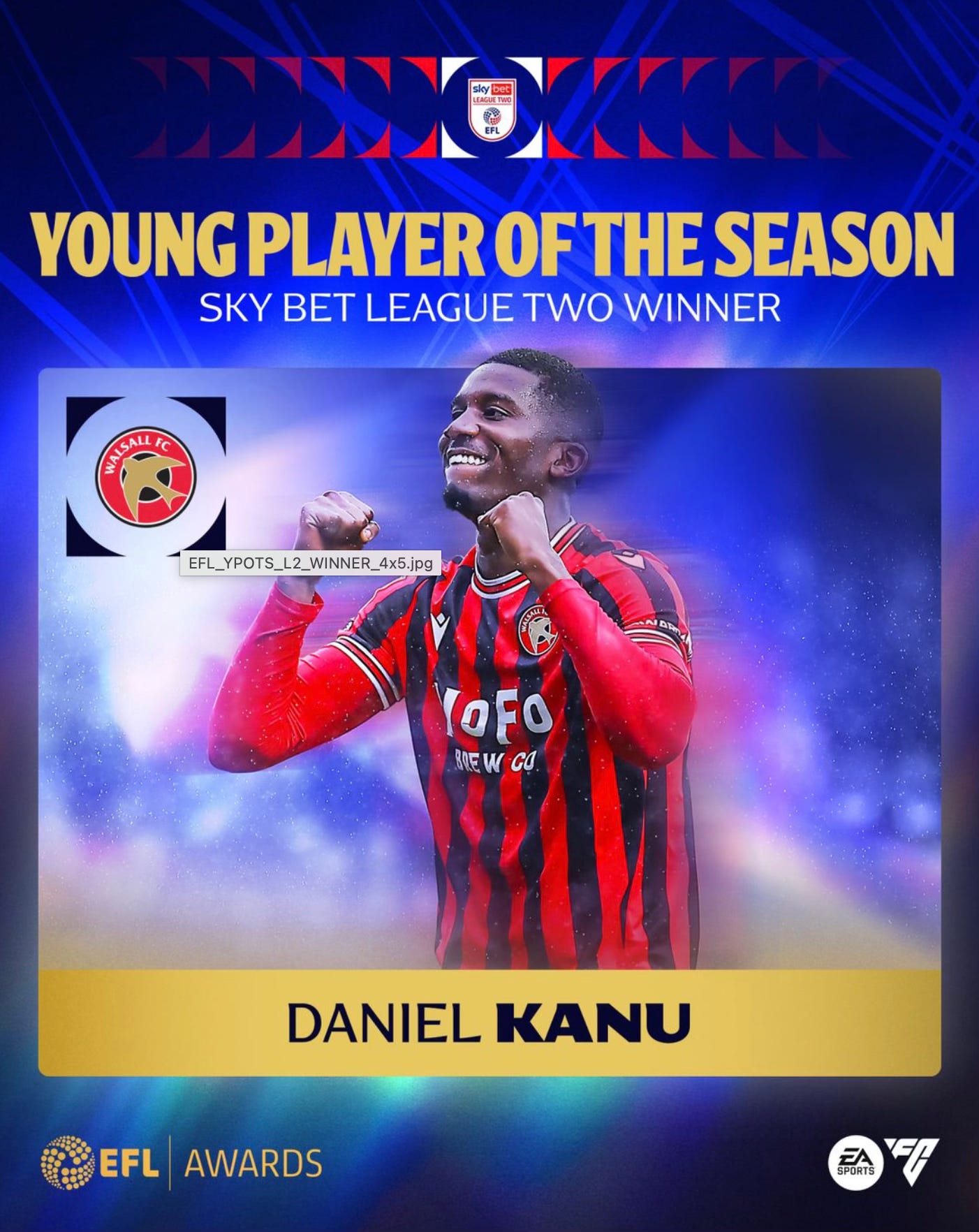 Charlton striker Dan Kanu has won League Two’s Young Player of the Season award - reward for netting 15 goals during his season-long loan at Walsall.