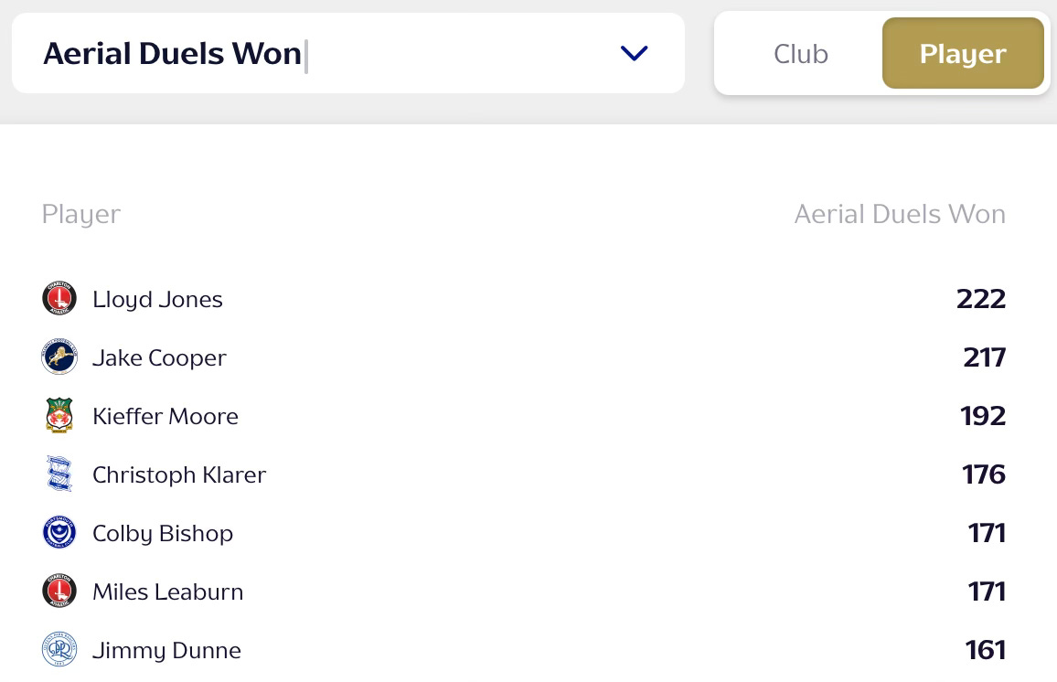 But Jones is also in first spot when it comes to aerial duels won as well.