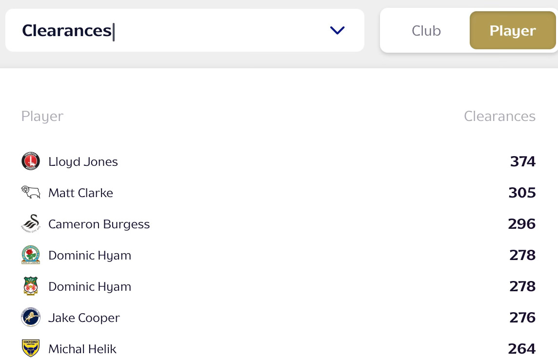 The Charlton Athletic centre-back has completed 374 clearances.