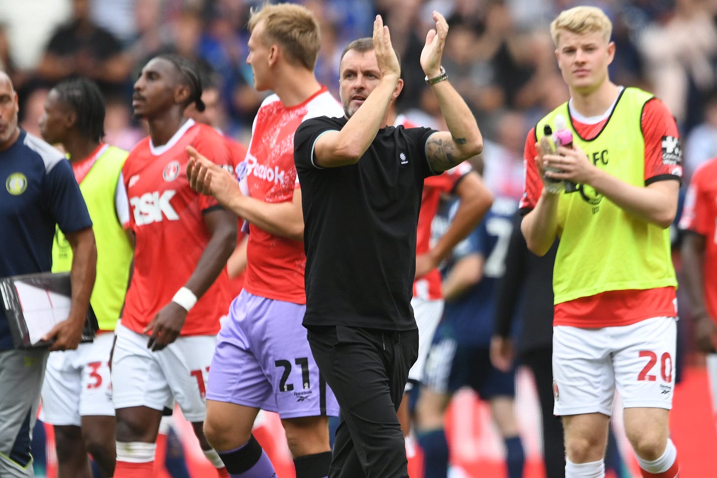 Nathan Jones applauds after Charlton’s 1-0 loss to Leicester City last weekend