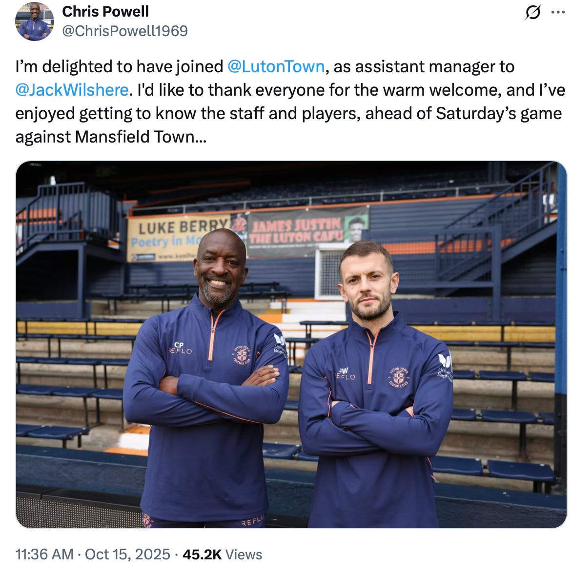 Wilshere succeeds Matt Bloomfield, who was sacked on October 6. The ex-Wycombe Wanderers boss only lasted nine months at Luton, who are in League One after back-to-back relegations.