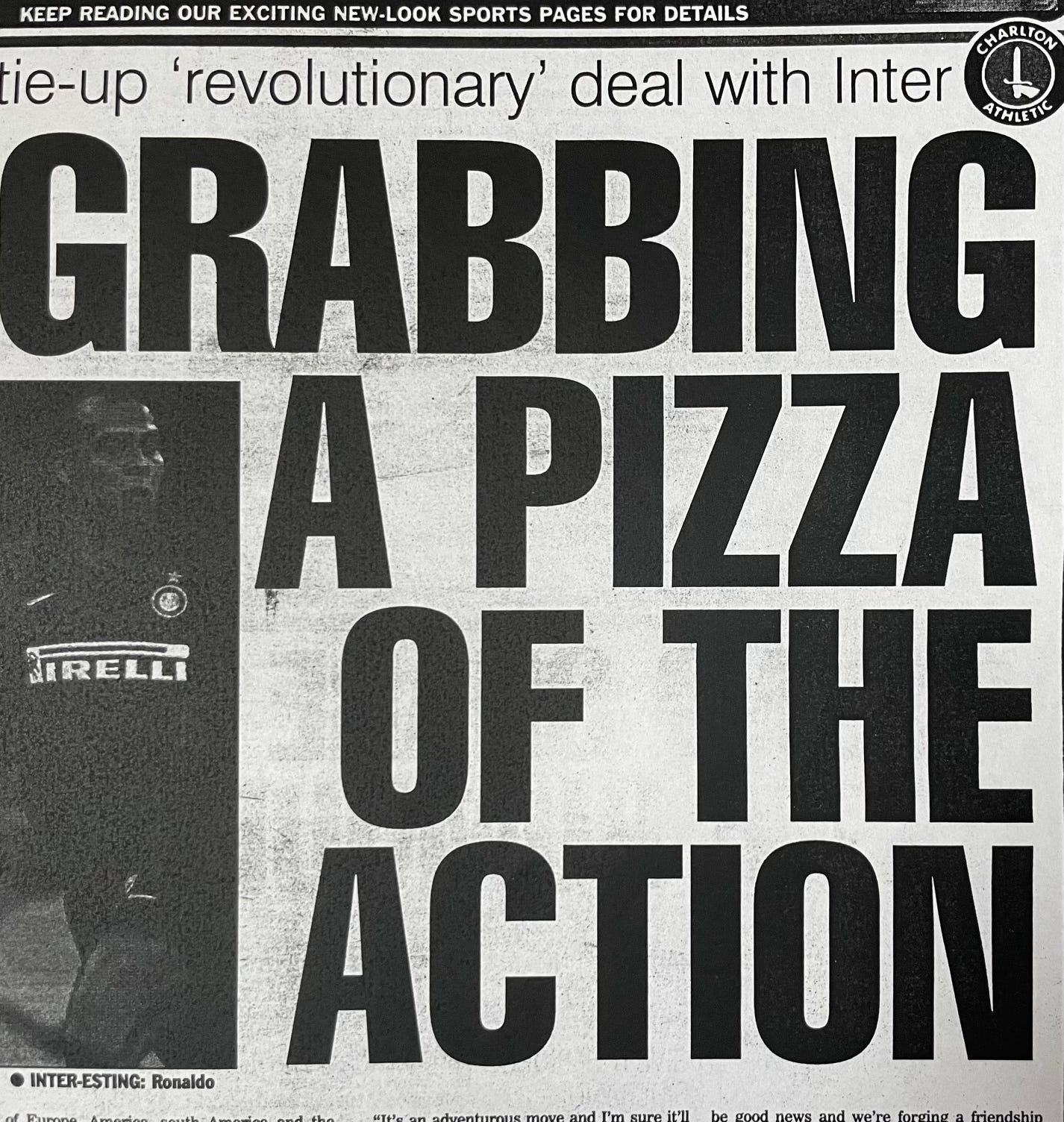 A classic cutting from the South London Press as Charlton Athletic strike deal with Serie A giant