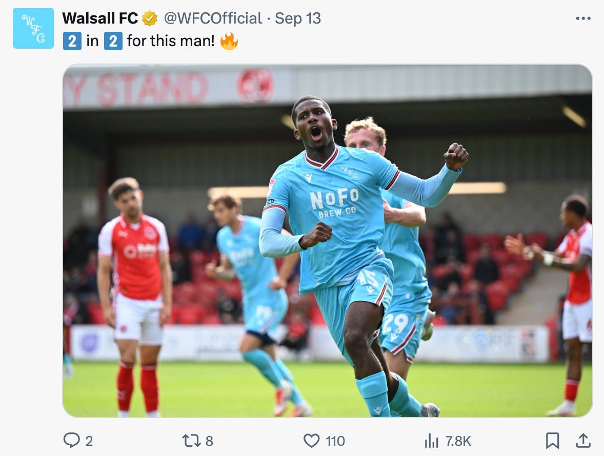 Walsall boss Mat Sadler said: “He tested their backline a lot. The conditions were tough, probably not what he has overly been used to when you consider where he has come from.