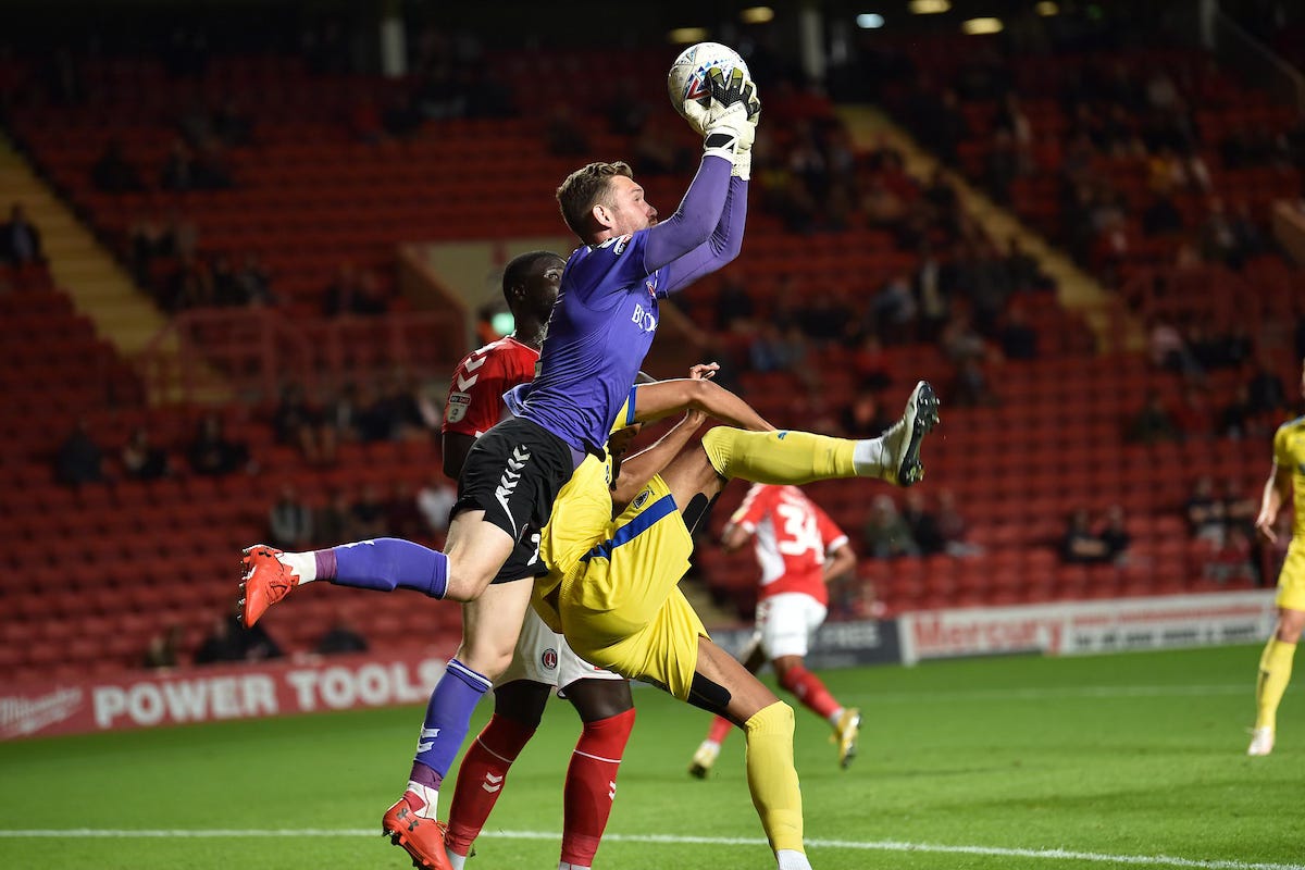 Jed Steer claims a cross during Charlton’s EFL Trophy match against AFC Wimbledon in September 2018