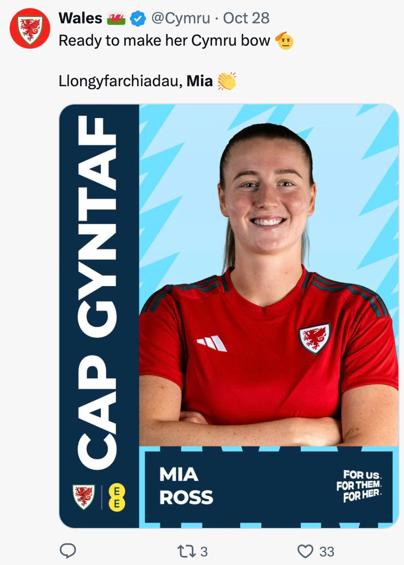 Mia Ross made her debut for Wales on Tuesday night but could not prevent them extending their winless run to 11 matches.