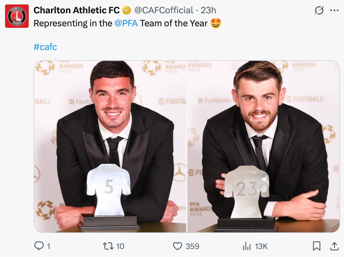 Charlton vice-captain Lloyd Jones and Charlie Kelman were both named in the 2025 PFA League One Team of the Year.