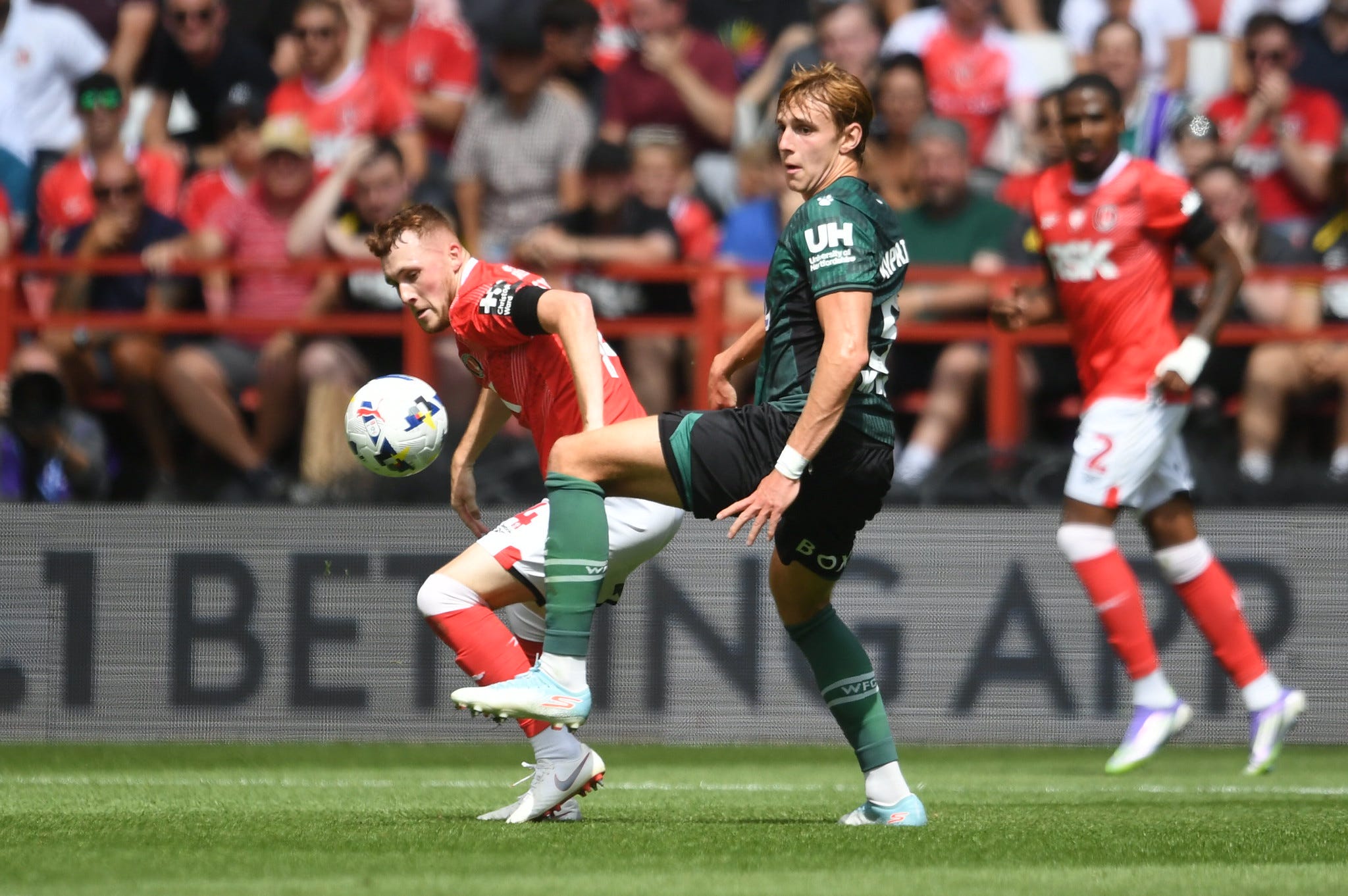 Sonny Carey competes for the ball on his Charlton debut