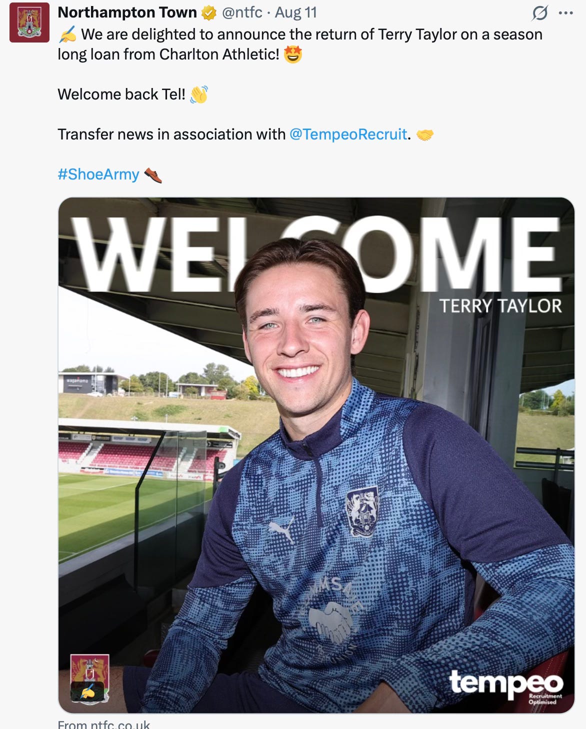 Cobblers boss Kevin Nolan said: “He was really keen to come back here and that not only says a lot about Terry, but it is a pat on the back for Northampton Town and what we do as a club that a player of Terry's quality was so keen to return.”