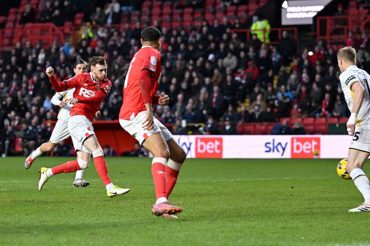 Sonny Carey scores Charlton’s 46th-minute goal against Sheffield United/Picture: Keith Gillard