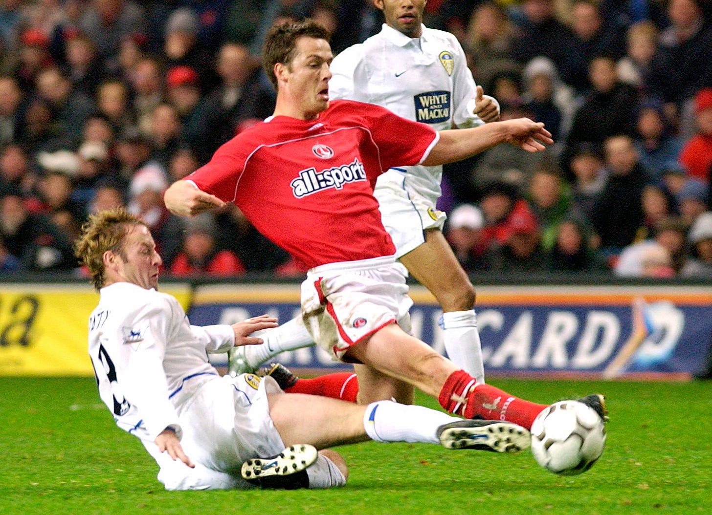 Scott Parker is tackled by Leeds United midfielder David Batty