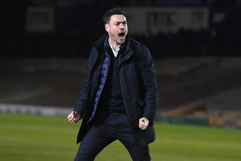 Johnnie Jackson celebrates a 2-1 win at Portsmouth in January 2023