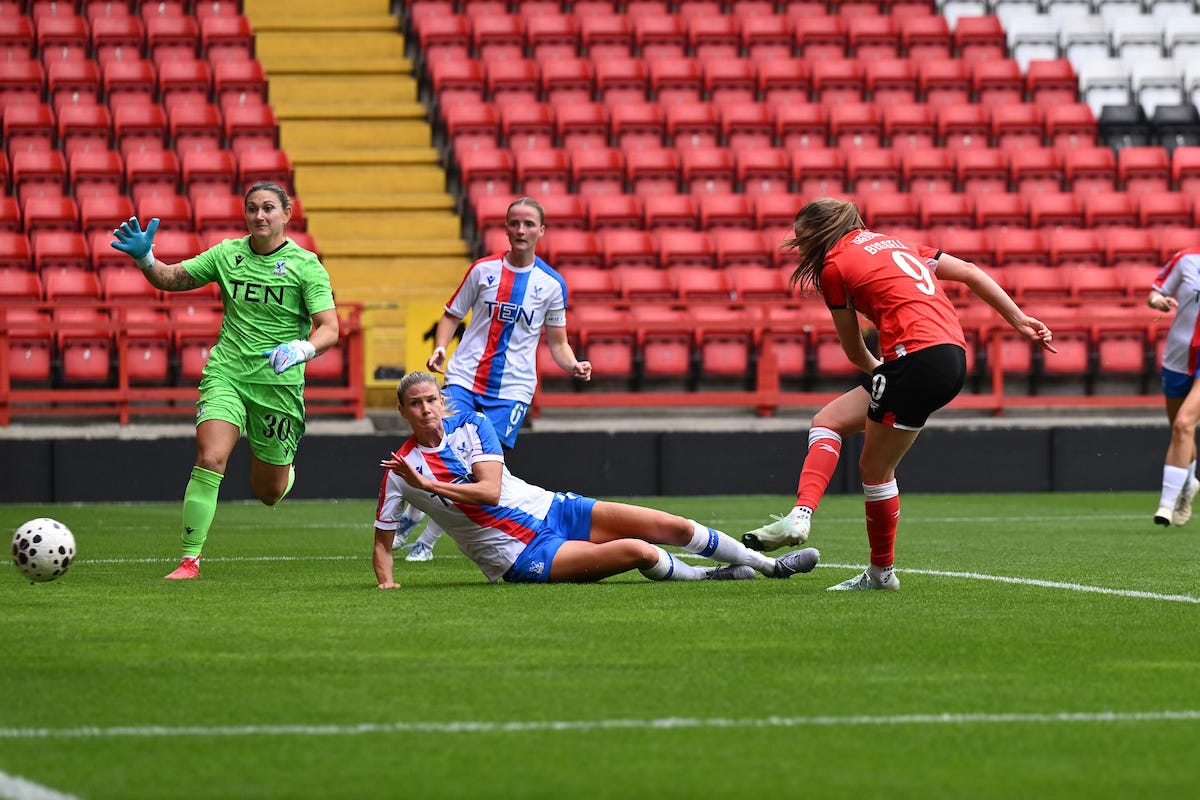 Palace goalkeeper Shae Yanez produced poor control on a backpass and could easily have been penalised for her panicked challenge on Bradley. Yanez initially saved from Amalie Thestrup but Bradley produced a low cross for Bissell to pounce from four yards out.